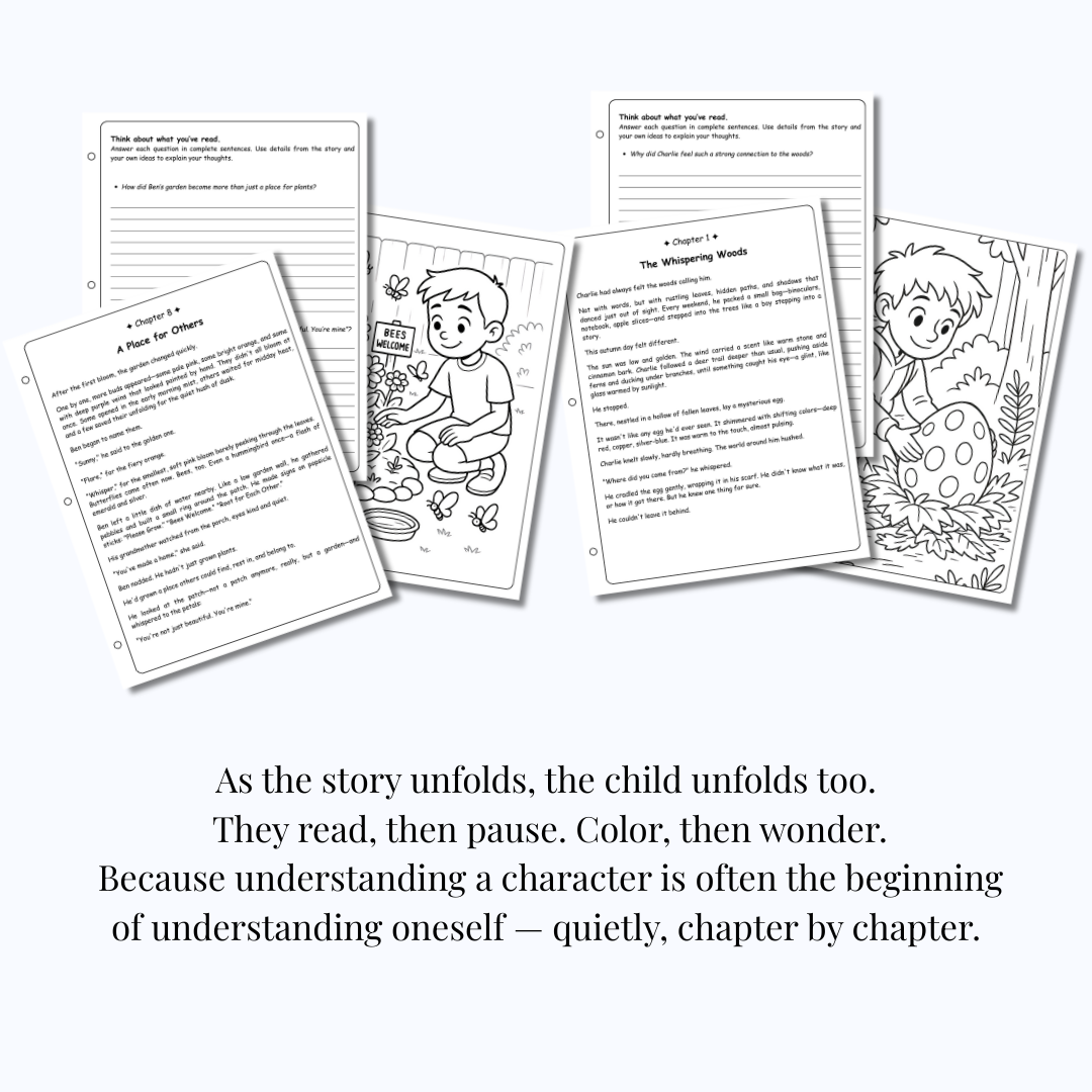 Two printable activity packs designed to support deeper reading, emotional insight, and creative engagement — based on the quiet, meaningful stories Ben's Blooming Garden and Charlie and the Dragon Egg.