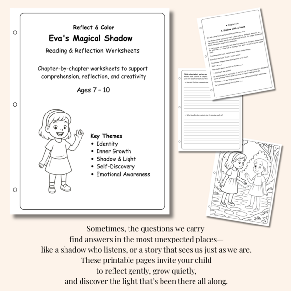 • Eva’s Magical Shadow – A girl who follows her shadow into courage and clarity (39 pages)