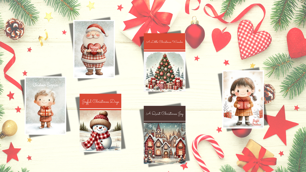 Bring a touch of warmth, charm, and gentle Christmas magic to your holiday season with this set of six printable folded Christmas greeting cards, each measuring 10 × 7 inches when printed (folded to the classic 5 × 7 inches format).