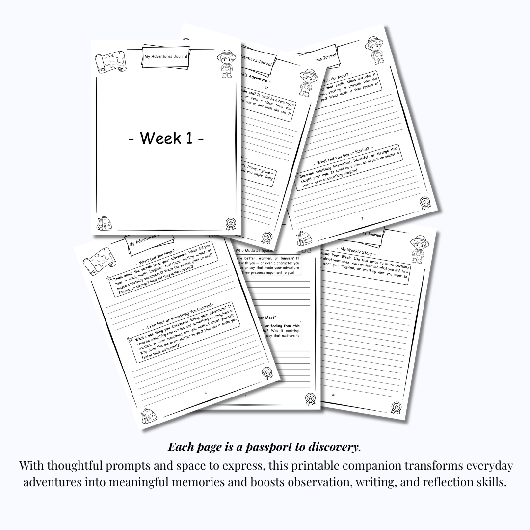 My Adventures Journal – For Boys (Ages 7–12) A 45-page printable journal for real or imaginary adventures, with weekly prompts, creative pages, and reflection activities. Perfect for curious boys who love to explore, write, and invent. PDF – US Letter